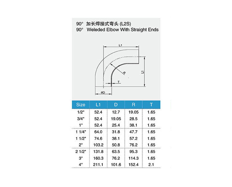 90°加長焊接式彎頭(L2S)